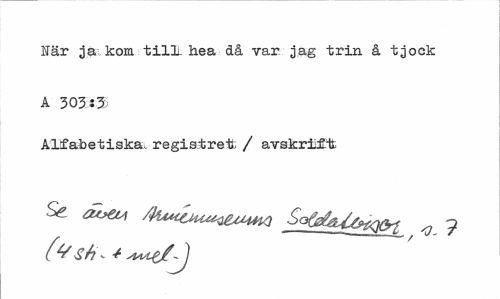 //// Här ja; kom till. hea då var jag trin å tjock A 303:3 //// Alfabetiska, registret; / avskrift ¦f ////