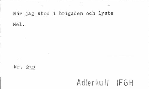 //// När jag stod i brigaden och lyste //// Mel. //// Nr. 232 //// Adlerkull IF6H ////