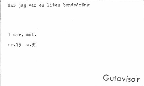 //// När jag var en liten bondedräng 1 str. mel. //// nr.75 s.95 //// Gul g vi so r ////