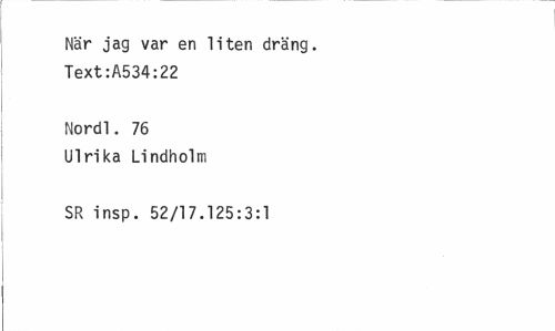 //// När jag var en liten dräng. Text:A534:22 //// Nordl. 76 Ulrika Lindholm //// SR insp. 52/17.125:3:1 ////