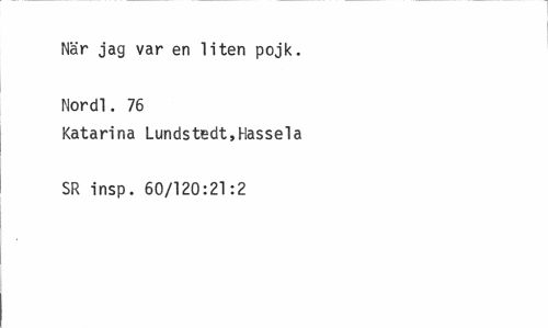 //// När jag var en liten pojk. Nordl. 76 //// Katarina Lundstedt,Hassel a SR insp. 60/120:21:2 ////