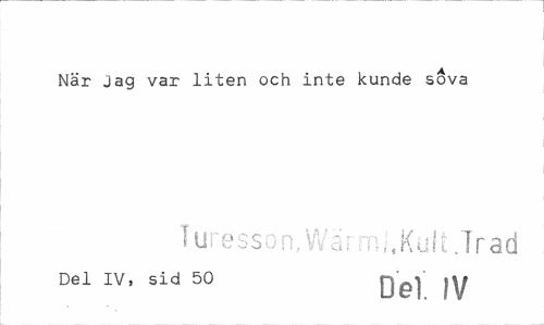 //// När Jag var liten och inte kunde sova //// Turesson,Wärmj.Kult.Trad //// Del IV, sid 50 Dg] |V ////