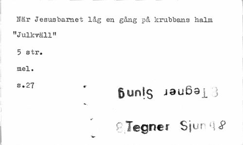 //// När Jesusbarnet låg en gång på krubbans halm "Julkväll" 5 str. mel. //// s. 27 «• //// gunjs jauö3j_ ] r Tegnér Sjur //// 1M- ////