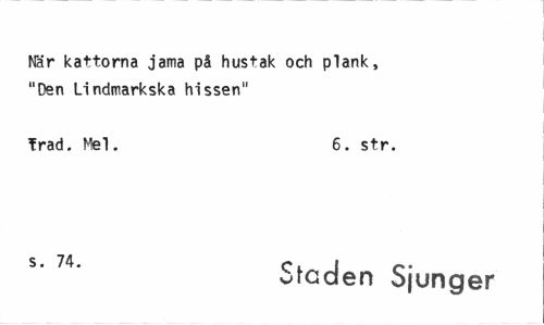 //// När kattorna jama på hustak och plank, "Den Lindmarkska hissen" //// frad. Mel. 6. str. //// s' 74' Staden Sjunger ////