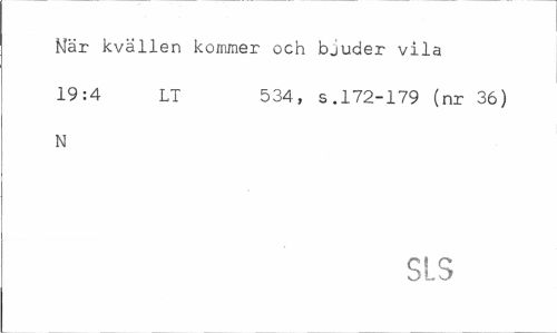 //// När kvällen kom/ner och bjuder vila //// 19:4 LT 534, s.172-179 (nr 36) //// N //// SLS ////