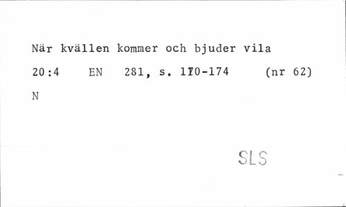 //// När kvällen kommer och bjuder vila 20:4 EN 281, s. 110-174 (nr 62) //// N //// SLS ////