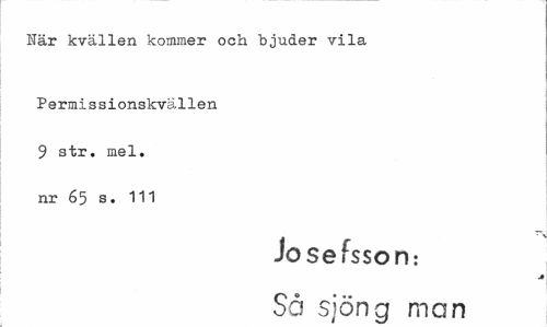 //// Här kvällen kommer och bjuder vila //// Permissionskvällen 9 str. mel. nr 65 s. 111 //// Josefsson: //// j //// Så sjöng man ////