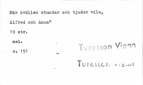 //// När kvällen stundar och bjuder vila, Alfred och Anna" 19 str. mel. //// T- reason //// s. 151 //// Turesscr, ////