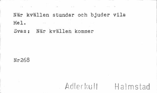 //// När kvällen stundar och bjuder vila Mel. //// Svas: När kvällen kommer Nr 268 //// Adlerkull Halmstad ////