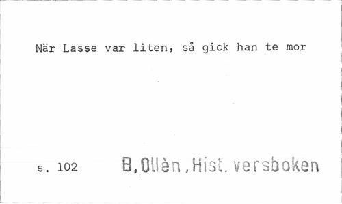 //// När Lasse var liten, så gick han te mor //// s. 102 B,Ollen ,Hist. versboken ////
