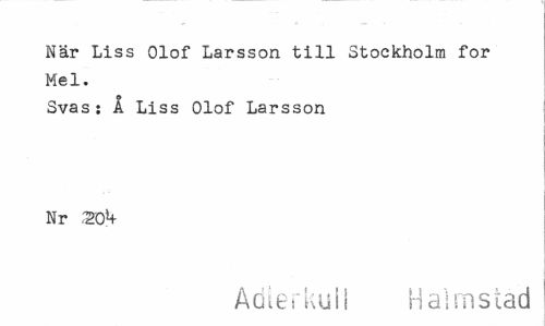 //// När Liss Olof Larsson till Stockholm for Mel. //// Svas: Å Liss Olof Larsson Nr 20*+ //// Adierkull Halmstad ////