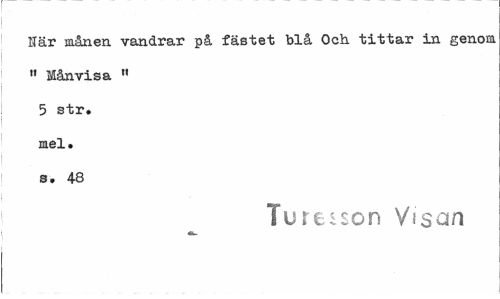 //// Här månen vandrar på fästet blå Och tittar in genom » Månvisa " 5 str. mel. s. 48 //// Turesson Visan ////