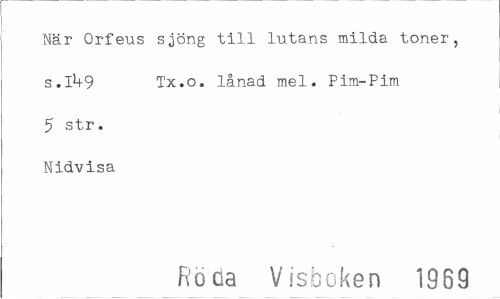 //// När Orfeus s^öng till lutans milda toner, s.1^9 Tx.o. lånad mel. Pim-Pim //// 5 str. Nidvisa //// Röda Visboken 1989 ////
