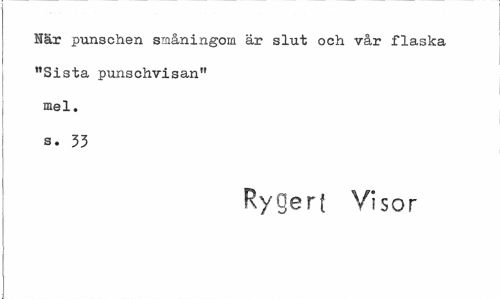 //// När punschen småningom är slut och vår flaska "Sista punschvisan" mel. s. 33 //// Ryger( Visor ////