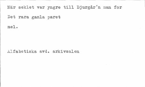 //// Här seklet var yngre till Djurgår'n man for Det rara gamla paret mel. //// Alfabetiska avd. arkivsalen ////