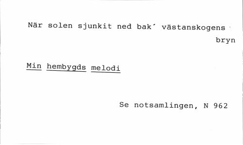 //// När solen sjunkit ned bak' västanskogens //// bryn //// Min hembygds melodi //// Se notsamlingen, N 962 //// I ////