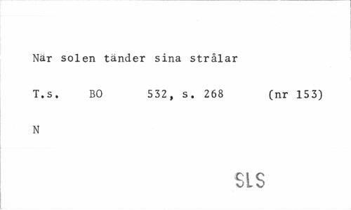 //// Nar solen tänder sina strålar //// T.s. BO 532, s. 268 (nr 153) //// N //// SLS ////