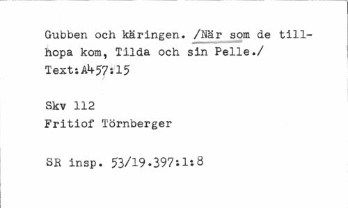 //// Gubben och käringen. /När som de tillhopa kom, Tilda och sin Pelle./ //// Texts 57» 15 //// Skv 112 //// Fritiof Törnberger SR insp. 53/19.397*.Is8 ////