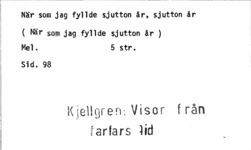 //// När som jag fyllde sjutton år, sjutton år //// ( När som jag fyllde sjutton år ) Mel. 5 str. //// Sid. 98 //// Kjellgren-. Visor f rån farfars lid ////