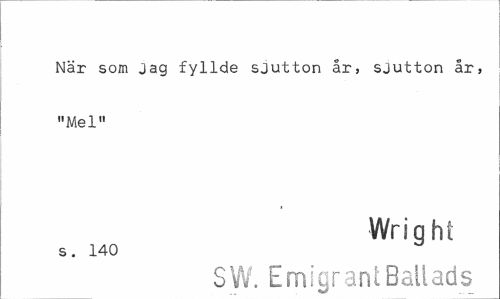 //// När som jag fyllde sjutton år, sjutton år, "Mel" //// Wriqhi //// S . 140 //// SW. Emigrant Ballads ////