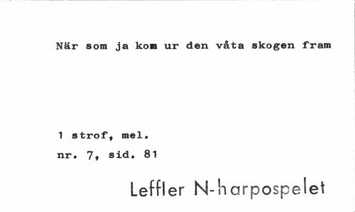 //// När som ja kon ur den våta skogen fram //// 1 strof, mel. nr. 7, sid. 81 //// Leffler N-h arpospelet ////