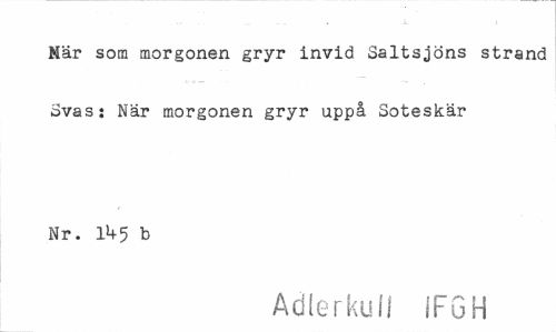 //// När som morgonen gryr invid Saltsjöns strand Svas; När morgonen gryr uppå Soteskär //// Nr. 11+5 b //// Adlerkull IFGH ////