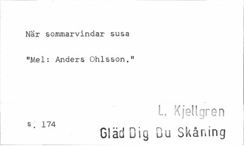 //// När sommarvindar susa "Mel: Anders Ohlsson." //// L Kjellgren //// s" 174 Gläd Dig Du Skåning ////