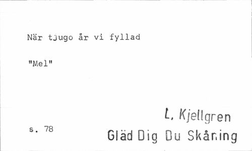 //// När tjugo år vi fyllad "Mel" //// L Kjellgren //// s' 78 Gläd Dig Du Skåning ////