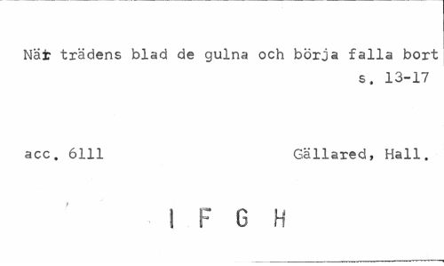 //// Nät trädens blad de gulna och börja falla bort //// s. 13-17 //// acc. 6111 Gällared, Hall. //// 1 F G H ////