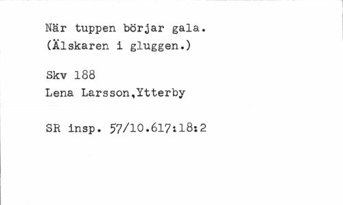 //// När tuppen börjar gala. (Älskaren i gluggen.) //// Skv 188 //// Lena Larsson,Ytterby SR insp. 57/10.617:I8s2 ////
