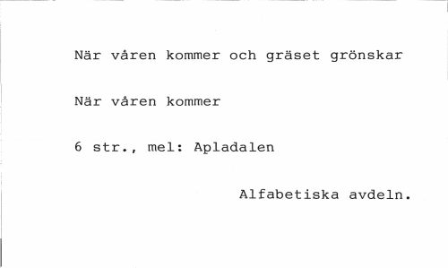 //// När våren kommer och gräset grönskar När våren kommer 6 str., mel: Apladalen //// Alfabetiska avdeln. ////