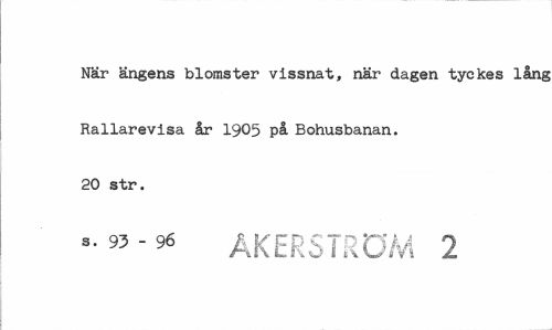 //// När ängens blomster vissnat, när dagen tyckes lång Rallarevisa år 1905 på Bohusbanan. 20 str. //// s. 93 - 96 å k f p c j d ri k Å 9 //// r~\I\ L. f\ C- I w i v 5 JL ////
