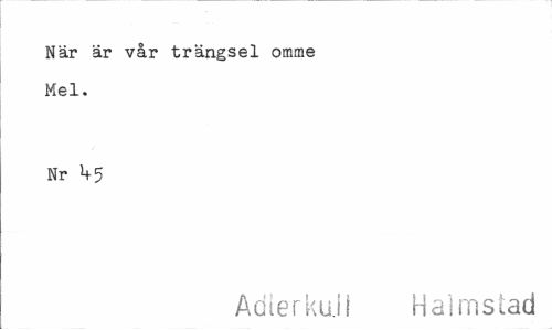 //// När är vår trängsel omme Mel. //// Nr h5 //// Adterku.il Halmstad ////