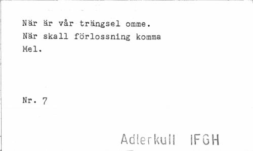 //// När är vår trängsel omme. När skall förlossning komma Mel. //// Nr. 7 //// Adlerkull IFGH ////