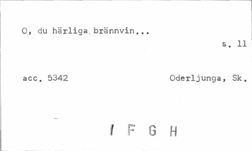 //// O, du härliga, brännvin... //// s. 11 //// acc. 5342 Oderljunga, Sk. //// f F G H ////