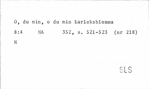//// O, du min, o du min kärleksblomma //// 8:4 NA 352, s. 521-523 (nr 218) //// N //// SLS ////