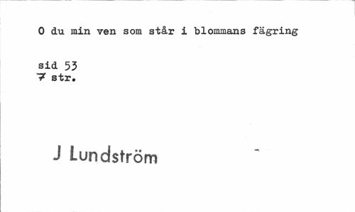 //// O du min ven som står i blommans fägring //// sid 53 "7 str. //// J Lundström ////
