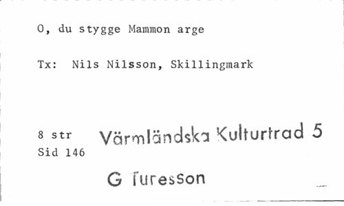 //// O, du stygge Mammon arge //// Tx: Nils Nilsson, Skillingmark //// 8 str Värmländska Kuiturfrad 5 //// Sid 146 //// G furesSon ////