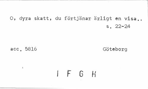 //// O, dyra skatt, du förtjänar ärligt en visa.. //// s. 22-24 //// acc. 5816 Göteborg //// I F G H ////