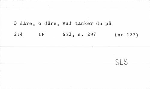 //// O dåre, o dåre, vad tänker du på //// 2:4 LF 523, s. 297 (nr 137) //// SLS ////