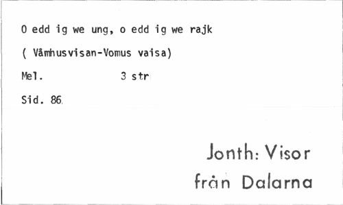 //// O edd ig we ung, o edd ig we rajk ( Våmhusvisan-Vomus vaisa) Mel. 3 str //// Sid. 86 //// Jonth: Visor //// från Dalarna ////