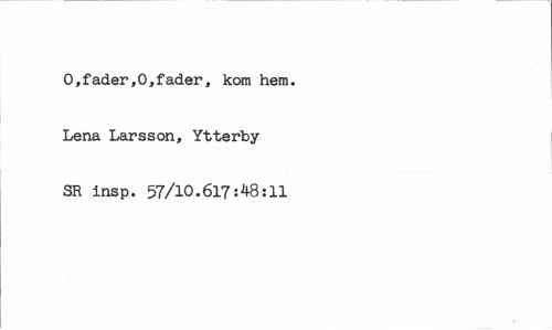 //// O,fader,O,fader, kom hem. Lena Larsson, Ytterby SR insp. 57/10.617:48:11 ////