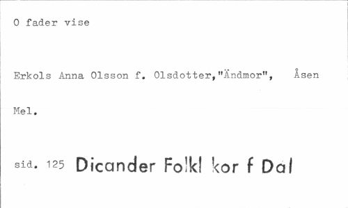 //// O fader vise //// Erkols Anna Olsson f. 01sdotter,"Andmor", Åsen Mel. //// sid. 125 Dicander Folk! kor f Da I ////