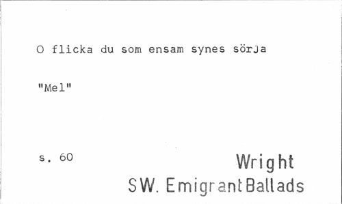 //// O flicka du som ensam synes sörja "Mel" //// «• 6o Wright //// SW. Emigrant Ballads ////