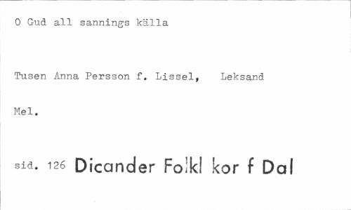 //// O Gud all sannings källa //// Tusen Anna Persson f. Lissel, Leksand Mel. //// sid. 126 Dicander Foikl kor f Dal ////