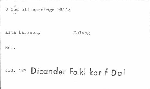 //// O Gud all sannings källa //// Asta Larsson, Malung //// Mel. //// sid. 127 Dicander Foikl kor f Dal ////