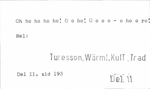 //// Oh ho ho ho ho! O o ho'. O o o o - o ho o ro Mel: //// Turesson, Wärml.KulT Jr ad //// Del II, sid 193 # v- . . - //// Del 11 ////