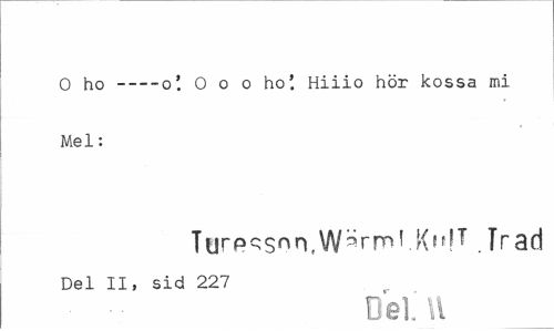 //// O ho---o'. O o o ho'. Hiiio hör kossa mi //// Mel: //// Tureqsnn.W^rmf KHT .Trad //// Del II, sid 227 //// Del U ////