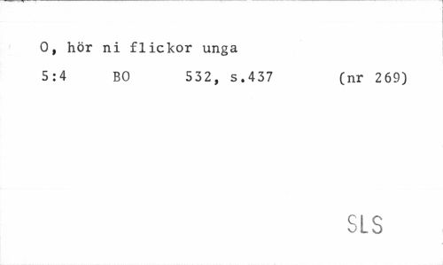 //// O, hör ni flickor unga //// 5:4 BO 532, s.437 (nr 269) //// SLS ////