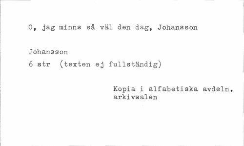 //// O, jag minns så väl den dag, Johansson Johansson //// 6 str (texten ej fullständig) //// Kopia i alfabetiska avdeln. arkivsalen ////